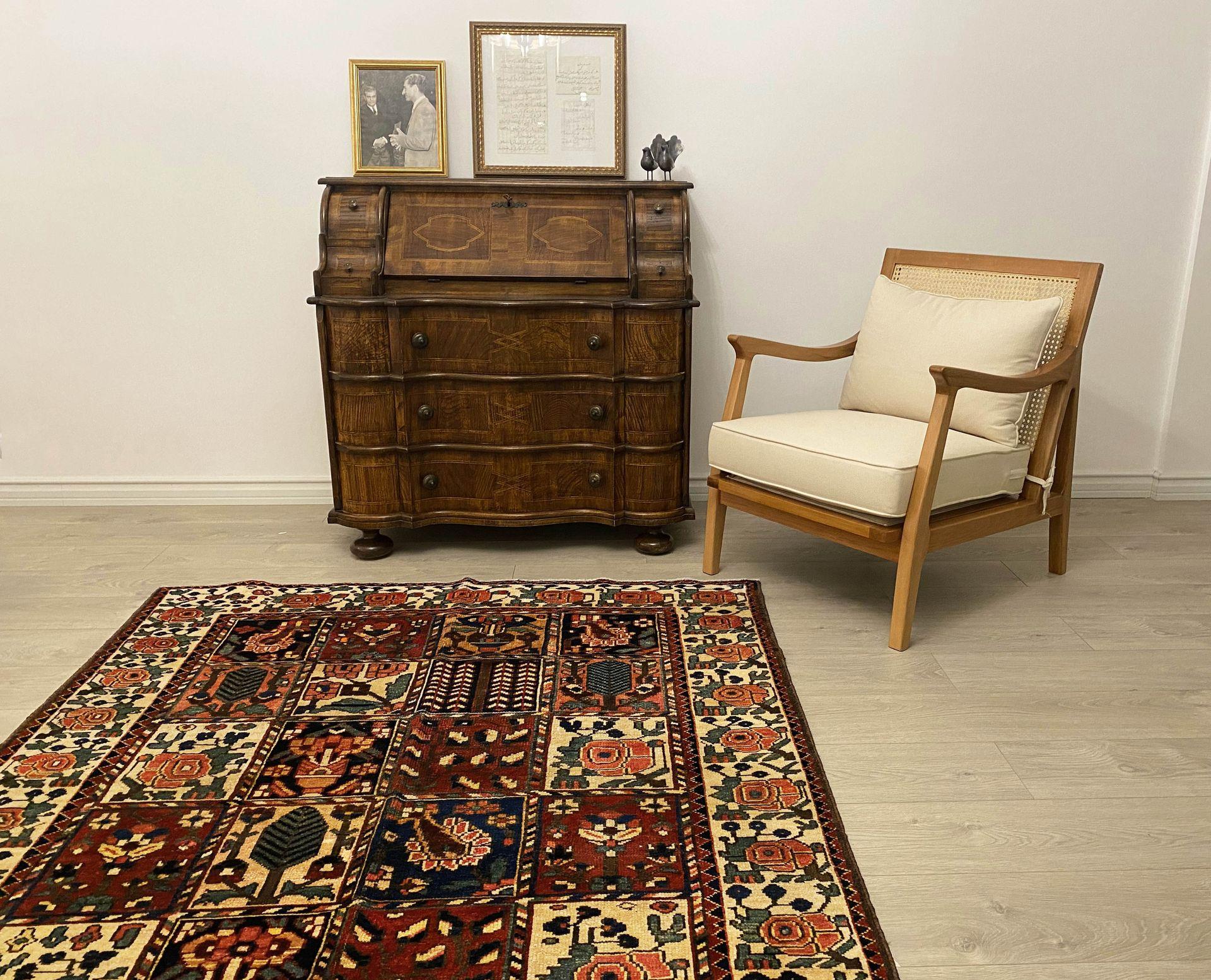 فرشهای گمشدهی مریم، پیش ِ ما بود! بله! درست خواندید! گم شده! فرشهای آنتیکِ بختیاری! فرشهایی که سالهای سال، دکانها و خانههای بسیاری را گشته بودند تا امروز، مریم را پیدا کنند و بیایند بنشینند کنجِ دل و خانهاش. ما -راستش را بگوییم- عادت کردهایم که فرشهای آنتیک به چشم ِ مشتریانی بیاید که سنوسالِ بیشتری دارند و جوانترها، رازِ اصالت و بیزمانیِ فرشهای آنتیک را از میانِ گرههای آن کشف نکنند. اما مریم، با اصالتِ ذاتی و سلیقهی مدرنش، بیدرنگ دست گذاشت روی همین نقطه و جادوی آن را باز کرد! فرشهای او، چنان به خانهی مدرن و اصیلِ او خوش نشستند که انگار، فرشبافی چندین دهه پیش، وسطِ خانهاش نشسته و این قالی را روی دارِ چوبیاش رجبهرج بافته بود.