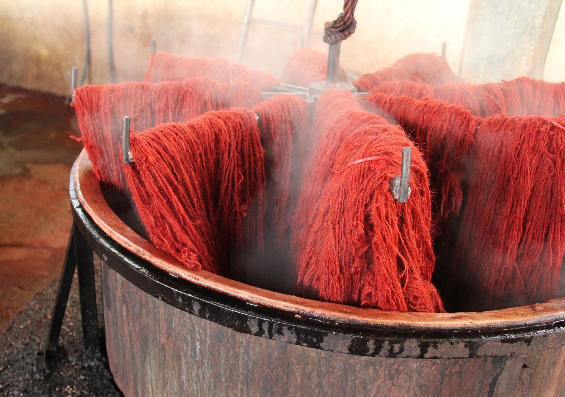 روش رنگرزی: رنگرزی الیاف با رنگزاهای گیاهی نیازمند دانش و تجربه بالایی است. بهطور خلاصه در این فرآیند، استاد رنگرز باید با دقت بسیار نسبتهای دقیقی از رنگزاها را در خم رنگرزی با الیاف مخلوط کند تا به رنگ دلخواه برسد. بدست آوردن هر یک از رنگهای گیاهی نیازمند فرمول خاص خود است. این دقت و زمان صرفشده در نهایت به تولید فرشی با رنگهای زنده و طبیعی منجر میشود که در برابر نور خورشید و شستشو مقاوم است.